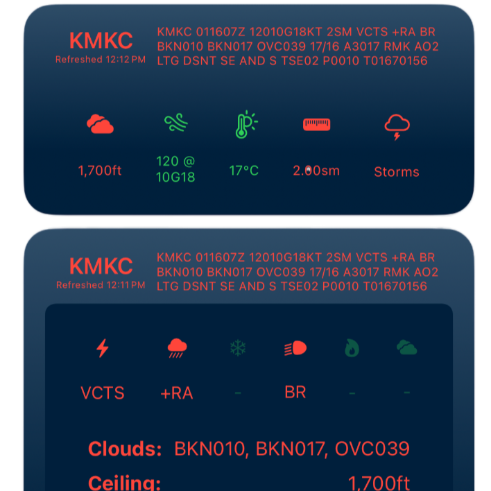 Keep an eye on the current weather from your home screen with widgets. Watch as they adapt to your configured personal minimums.