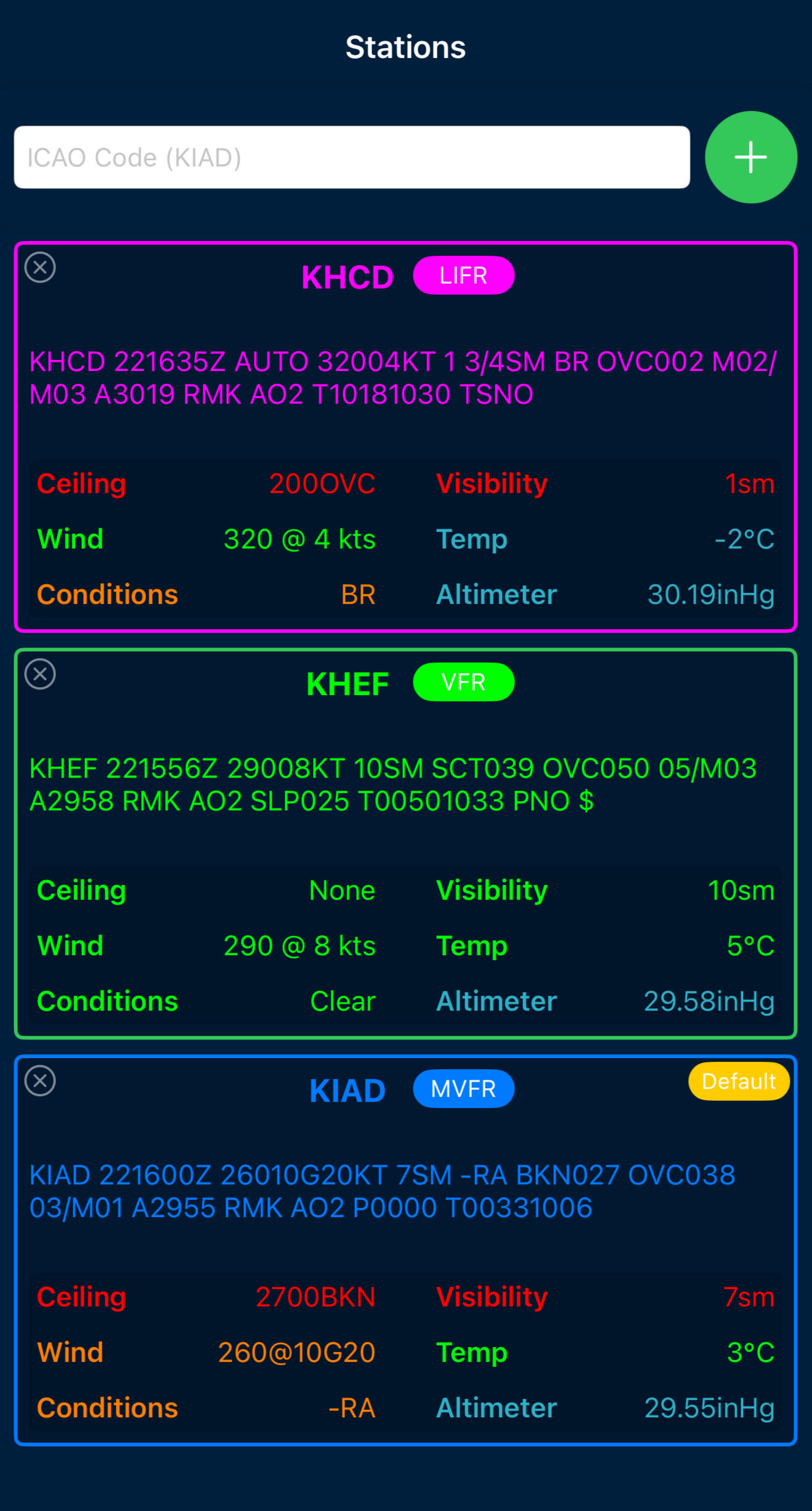 Tired of clicking on every airport on your area to see the surrounding conditions? Create a list of the airports you care about and check their current weather in one easy place.